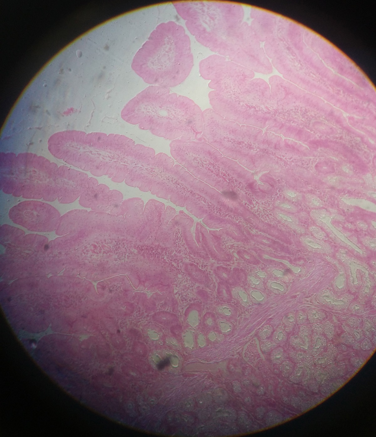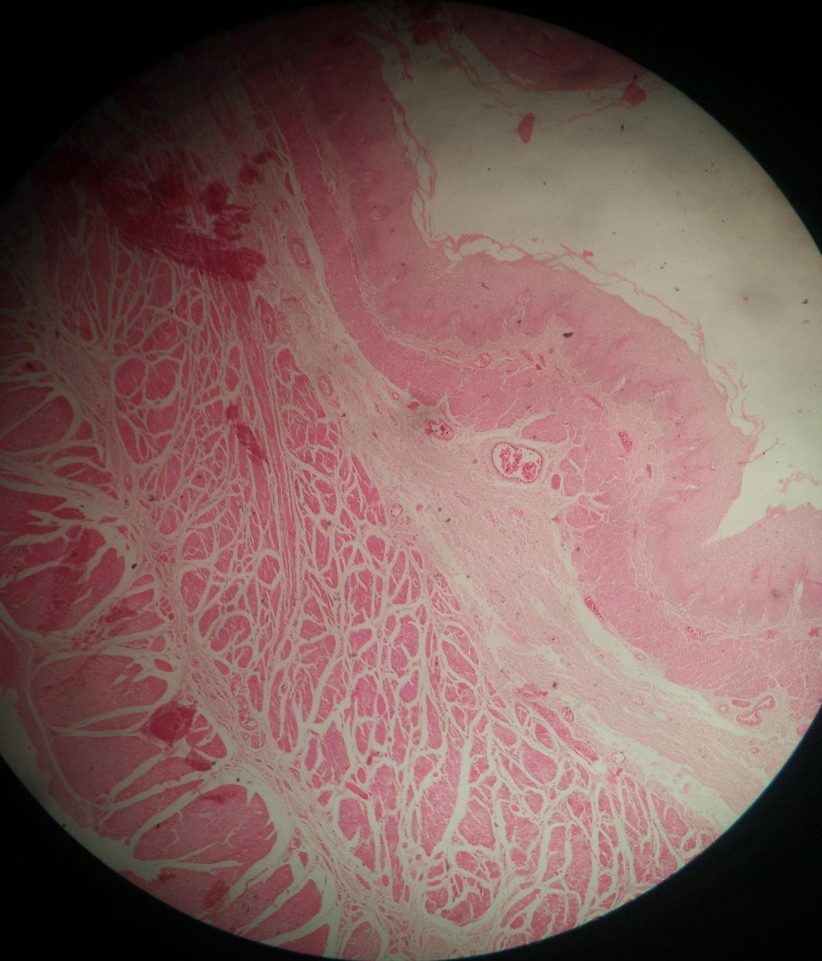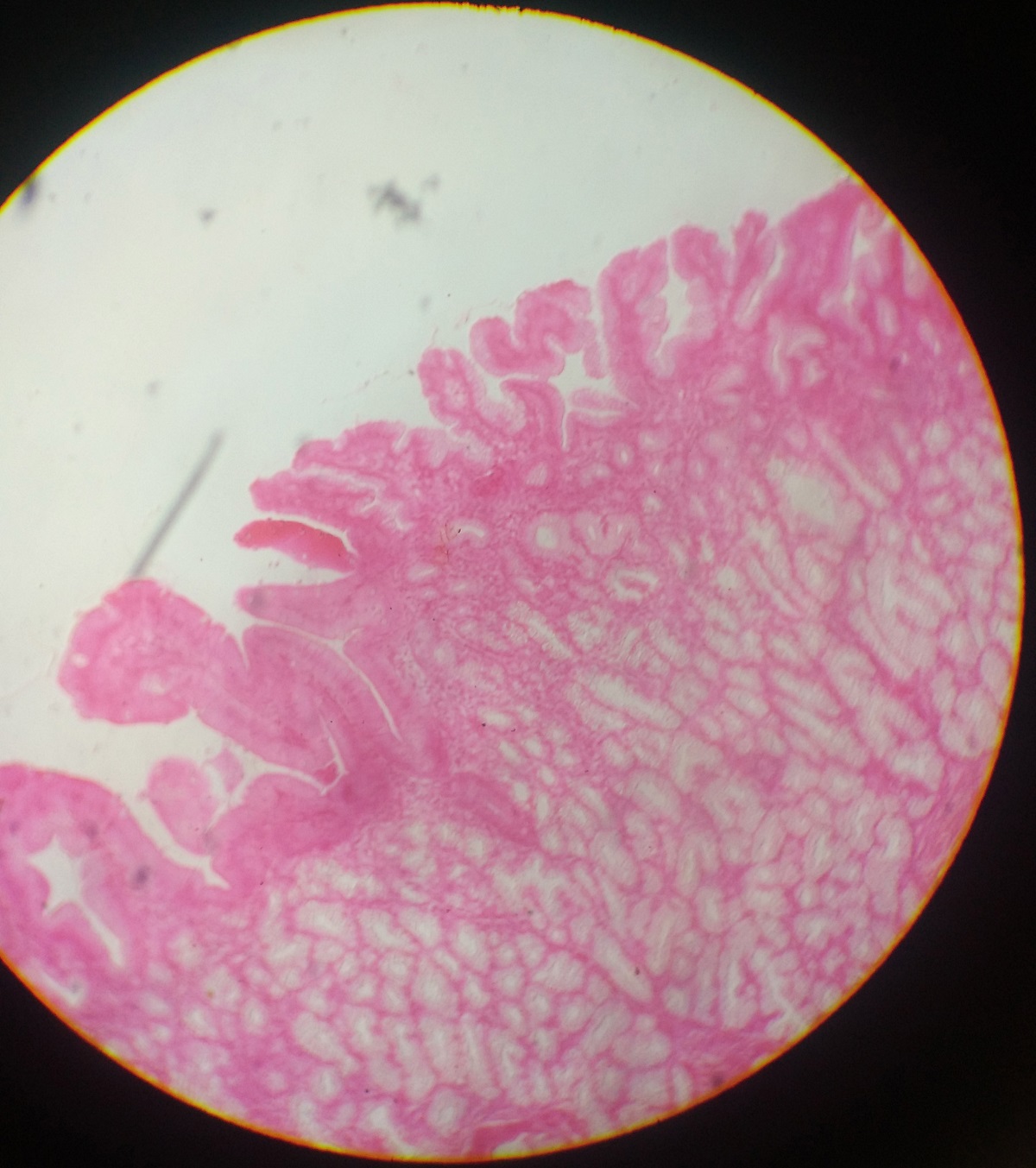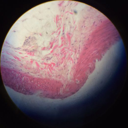 The urinary bladder slide in our college is not of human( in human, preparation of complete circumference would not be possible)so slide in college have complete circumference. One way to distinguish ureter and urinary bladder is to compare magnification.