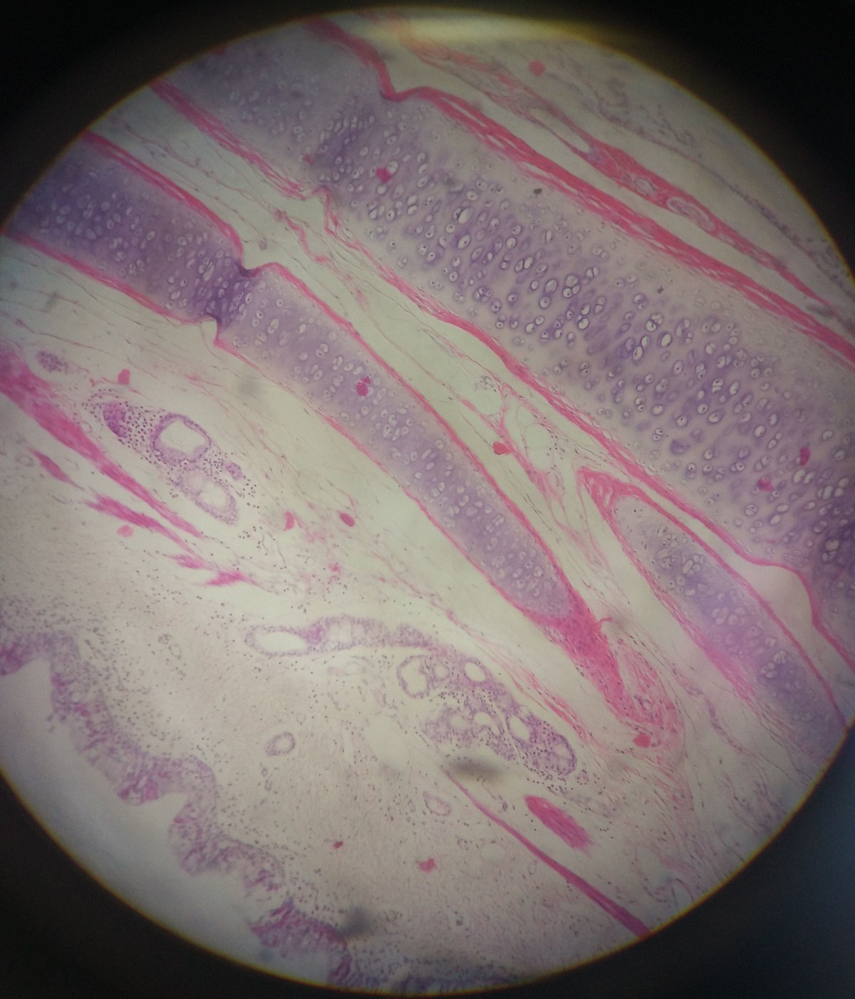 histology slide of hyaline cartilage of bronchus