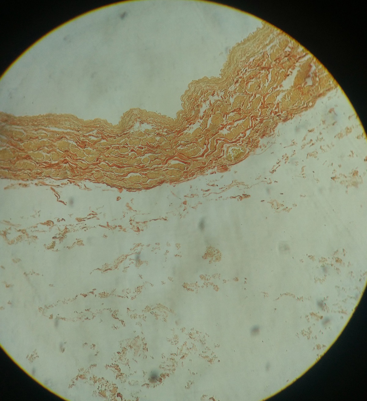 Thick middle layer is tunica media with smooth muscles and elastic fibre in form of internal and external elastic lamina